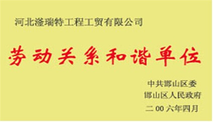 滏瑞特成立以來,被省、市相關部門授予“河北省首屆百家知名民營企業”、“河北省五一獎狀”、“ 河北省信用良好企業”、“河北省消費者信得過單位”、“河北省文明誠信市場”、“工商聯合會優秀會員企業”、“守合同重信用企業”、“捐資助學先進單位”、“援建災區貢獻企業”等榮譽稱號,深受社會和廣大消費者贊譽。